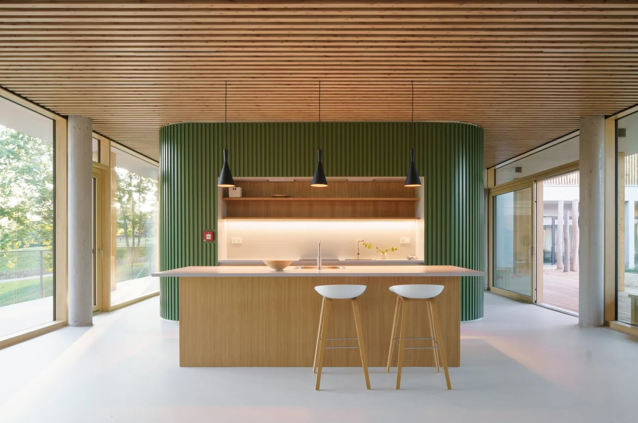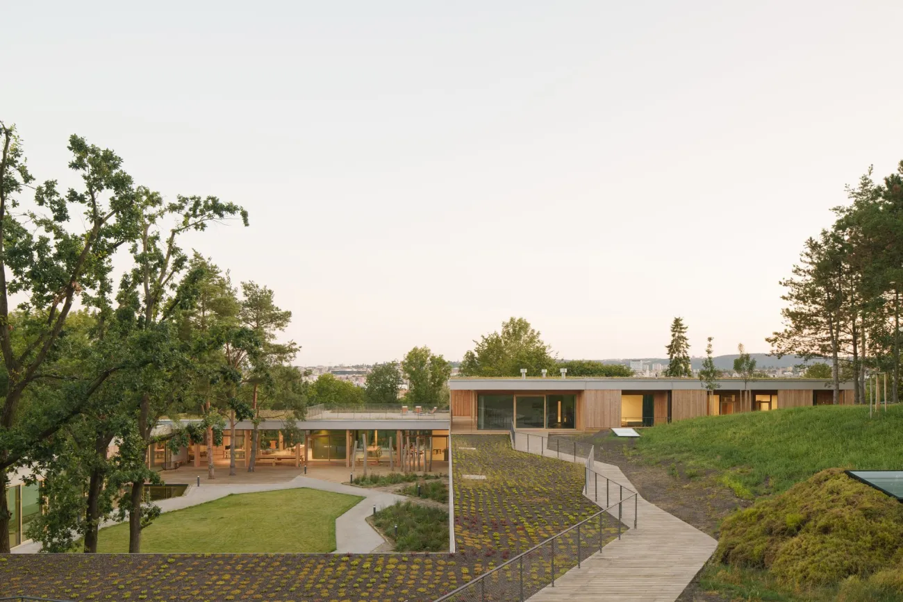 🌳 Propojení s přírodou: Hospic poskytuje dětem s nevyléčitelným onemocněním rehabilitace i terapie a zároveň vytváří prostor pro odpočinek a podporu jejich rodin. Architekti podle poroty vytvořili prostředí, které spojuje funkčnost s hlubokou lidskostí – otevřený, světlem prostoupený dům zasazený do svažitého pozemku přirozeně propojuje interiér s krajinou.