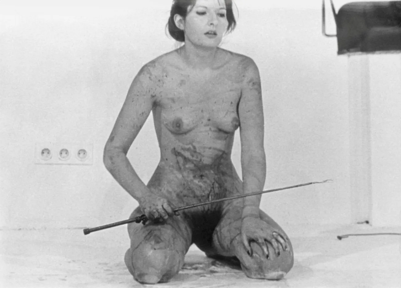 🎥 Nejslavnější performance: V centru stojí vždy umělkyně samotná – a její tělo. Vídeňská galerie také některé z jejích nejslavnějších akcí fyzicky znovuinscenuje.