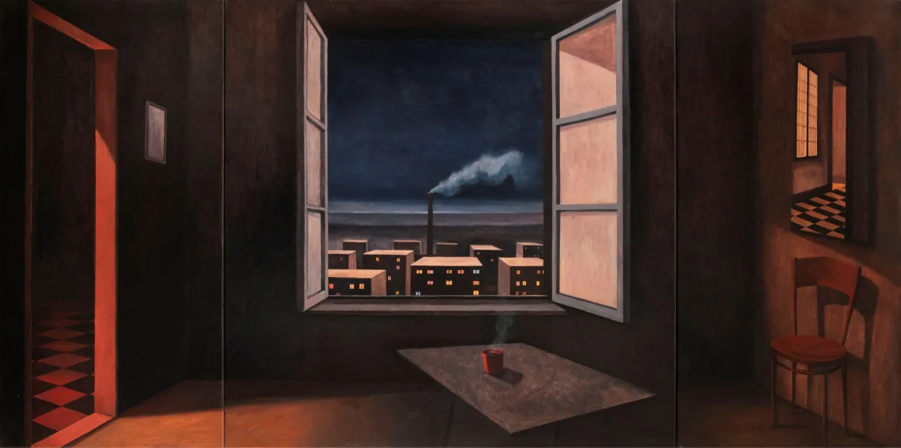 💭 Inspirace: Autorka pracuje s kontrastem světla a stínu, prostorovou perspektivou a přízračnou atmosférou, která vzbuzuje dojem, že každá scéna je výsekem širšího příběhu.
