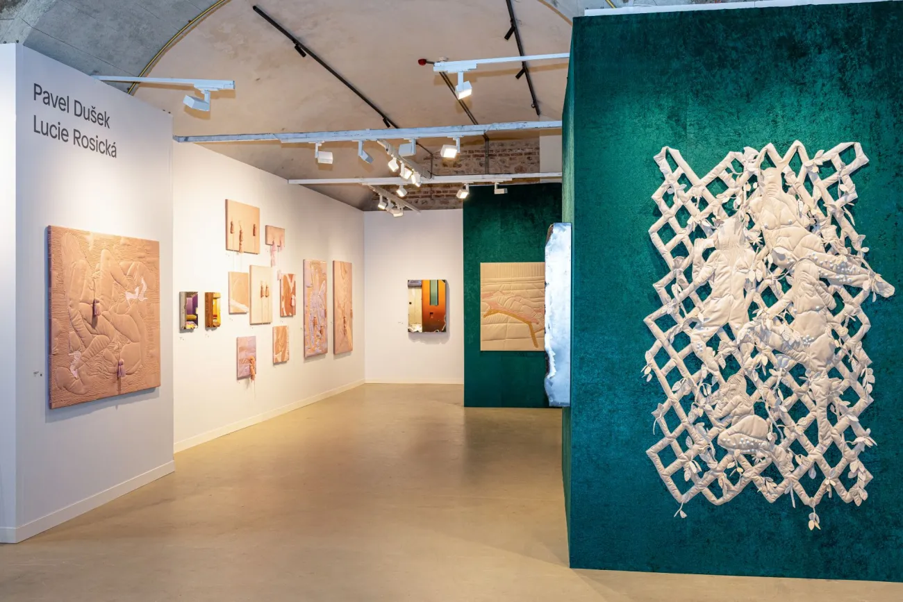 Trafo Gallery představila dva zástupce mladší generace, Lucii Rosickou a Pavla Duška. Jejich díla vynikají netradičním technickým zpracováním, oba experimentují se strukturou, povrchem a nečekanými kombinacemi materiálů.