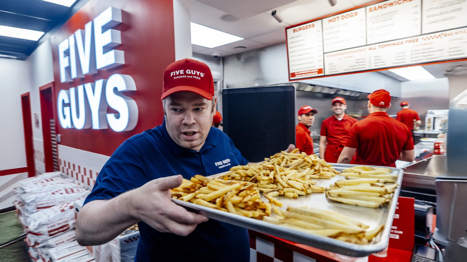 - A pozornost vyvolal i fastfood Five Guys, který v pondělí otevře svou první pobočku v Česku. Řetězec je známý nejen velkými porcemi hranolek, ale na fastfood také vysokými cenami: třeba burger se sýrem a slaninou vyjde na 345 korun, nejmenší hranolky na 125 korun.