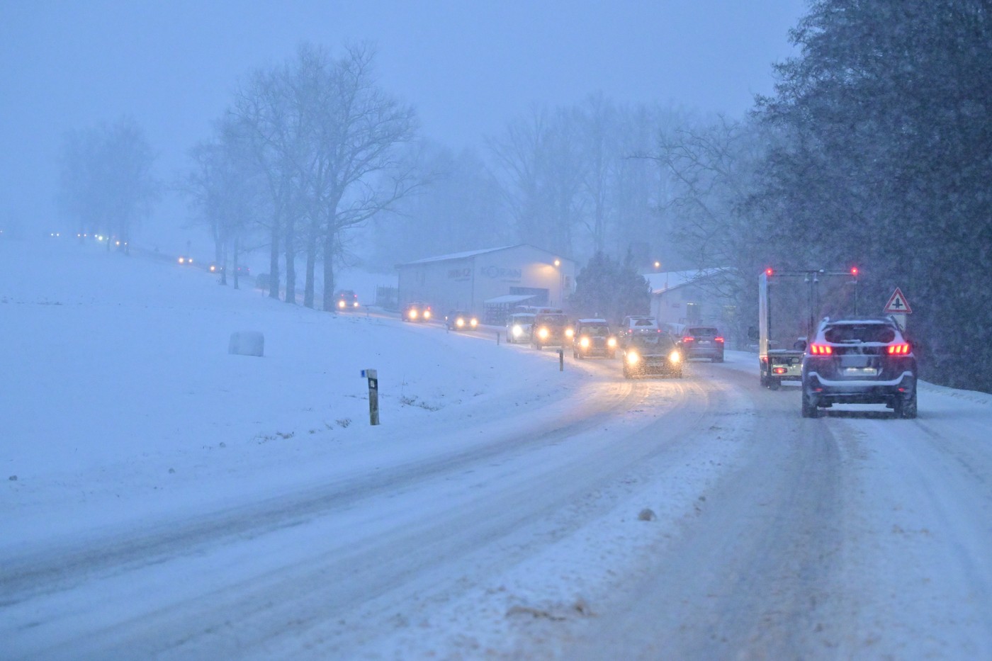 ➡️ Co se stalo: Od západu postupovalo o brzkého rána silné sněžení a silnice se staly jen obtížně sjízdnými. Nával sněhu byl tak velký, že silničáři neměli šanci stíhat jeho odklízení. V kopcích vytvářely potíže hlavně uvízlé kamiony. Tradičně se stávalo to, že kamion nevyjel kopec, druhý se ho snažil objet a nevyjel také. Problémem byla i snížená viditelnost.