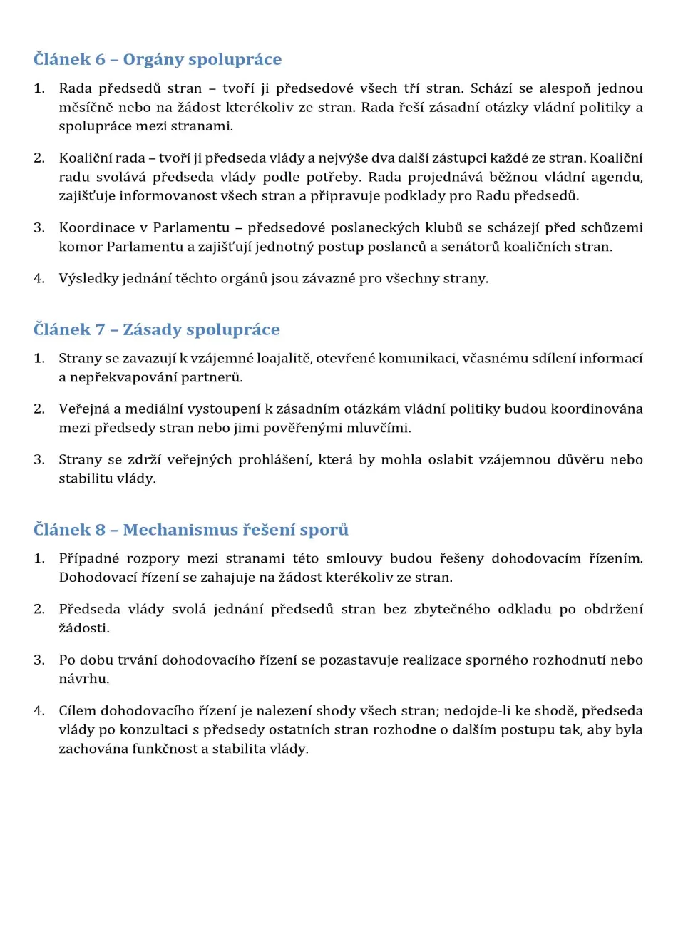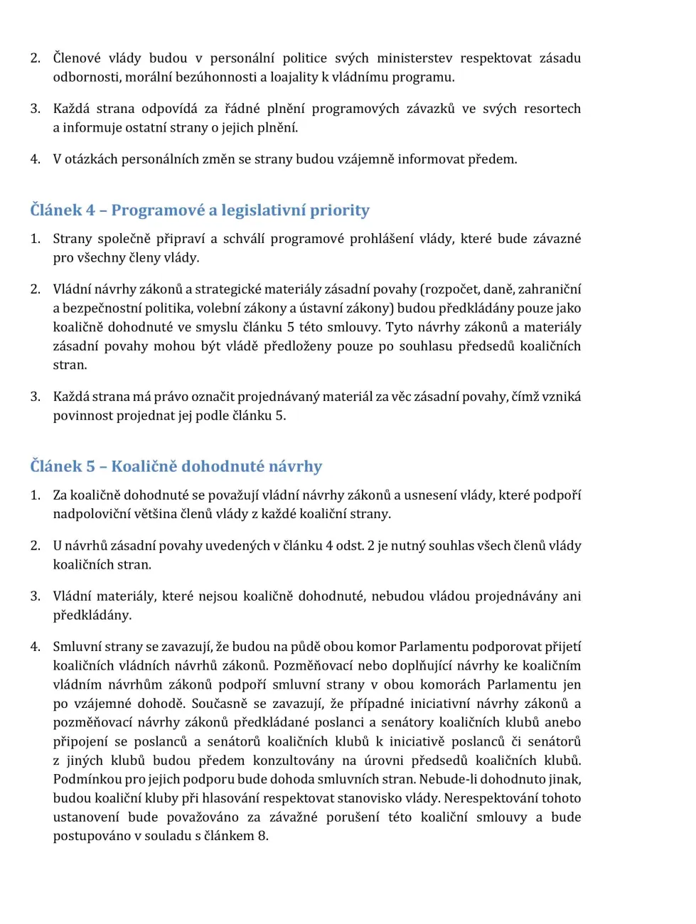 „Strany zajistí, aby se všichni jejich poslanci zúčastnili hlasování o důvěře vládě a aby vládu po celé volební období podporovali.“