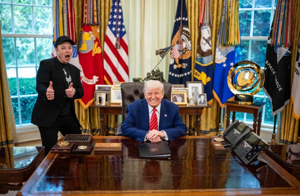 Elon Musk a Donald Trump v Oválné pracovně. Musk v květnu skončil.
